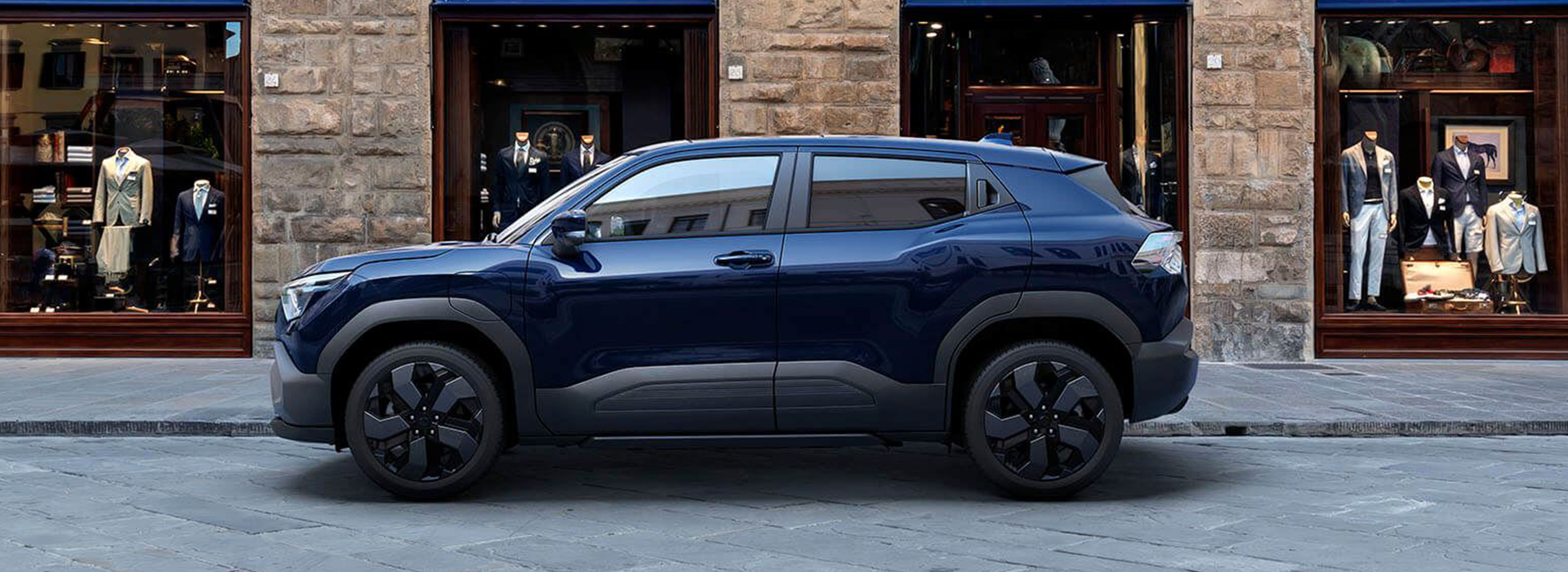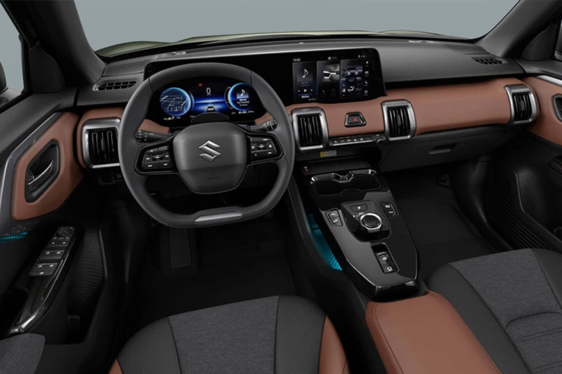 Med en startpris på 229.990 kroner viser Suzuki, at de er helt klar til at træde ind på det stærkt konkurrenceprægede elbilsmarked. Til denne pris får man nemlig en markant designet SUV på 4,3 meter, der med en akselafstand på 2,7 meter giver rigtig god plads på for- og bagsæderne. Og inden døre mødes man af en rummelig kabine, der fås i to farvetemaer. De to skærme på 10,25” og 10” glider ind i hinanden og et 2-eget rat, der er afskåret i top og bund, sikrer bedre udsyn og nemmere ind- og udstigning. Og for større fleksibilitet kan bagsædet ”slides” frem og tilbage (16 cm) for større bagagerum eller mere benplads.