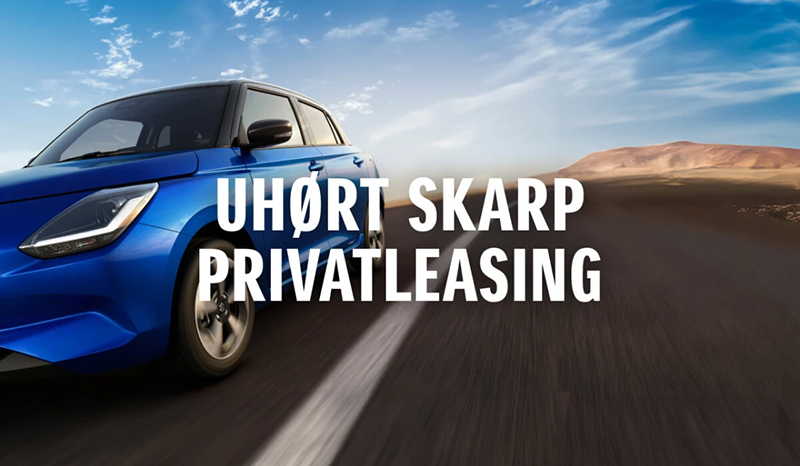 Med Suzuki privatleasing kan du nu komme ud at køre Swift med en månedlig ydelse fra kun 2.295 kr. Det gælder vel at mærke den veludstyrede version Swift Advance. Og for kun 150 kr. mere om måneden kan du køre afsted i topmodellen Swift Desire.
