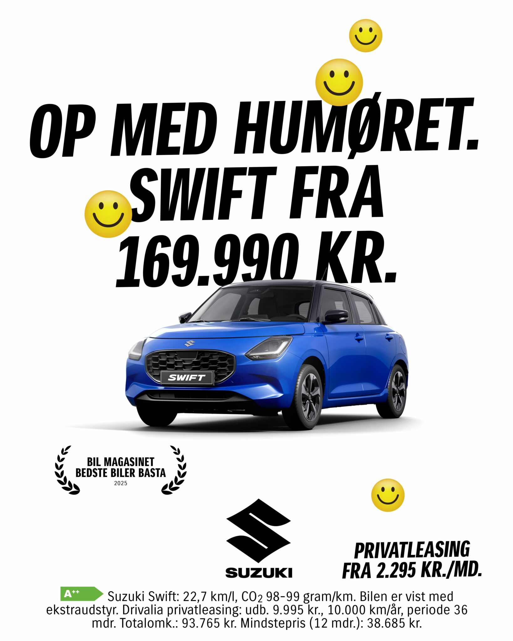 Find køreglæden i en Suzuki Swift fra kun 170.000 kr. eller privatleasing fra 2.295 kr/md.